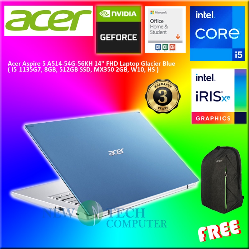 LAPTOP Acer Aspire 5 A514-54G-56KH 14'' FHD Laptop Glacier Blue ( I5-1135G7, 8GB, 512GB SSD, MX350 2GB, W10, HS )
