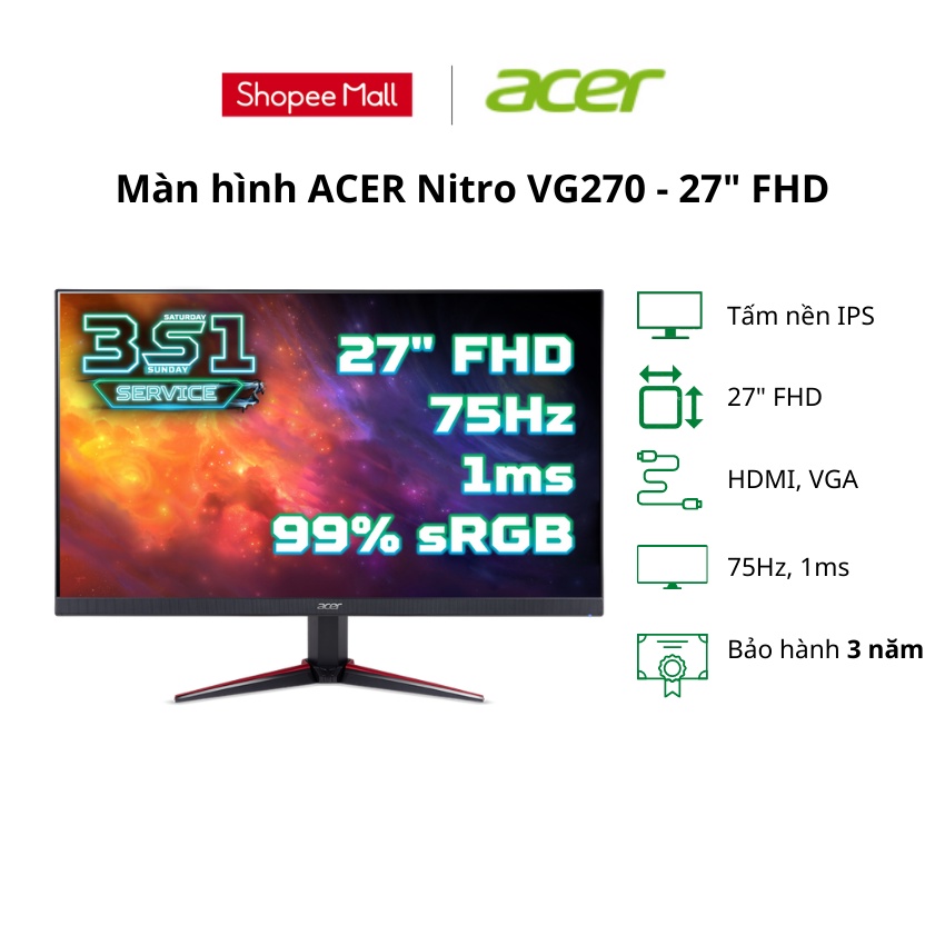 Acer Nitro VG270 Computer Monitor - 27 inch FHD