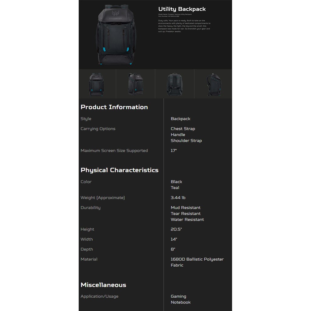 Acer Predator Gaming Utility Backpack