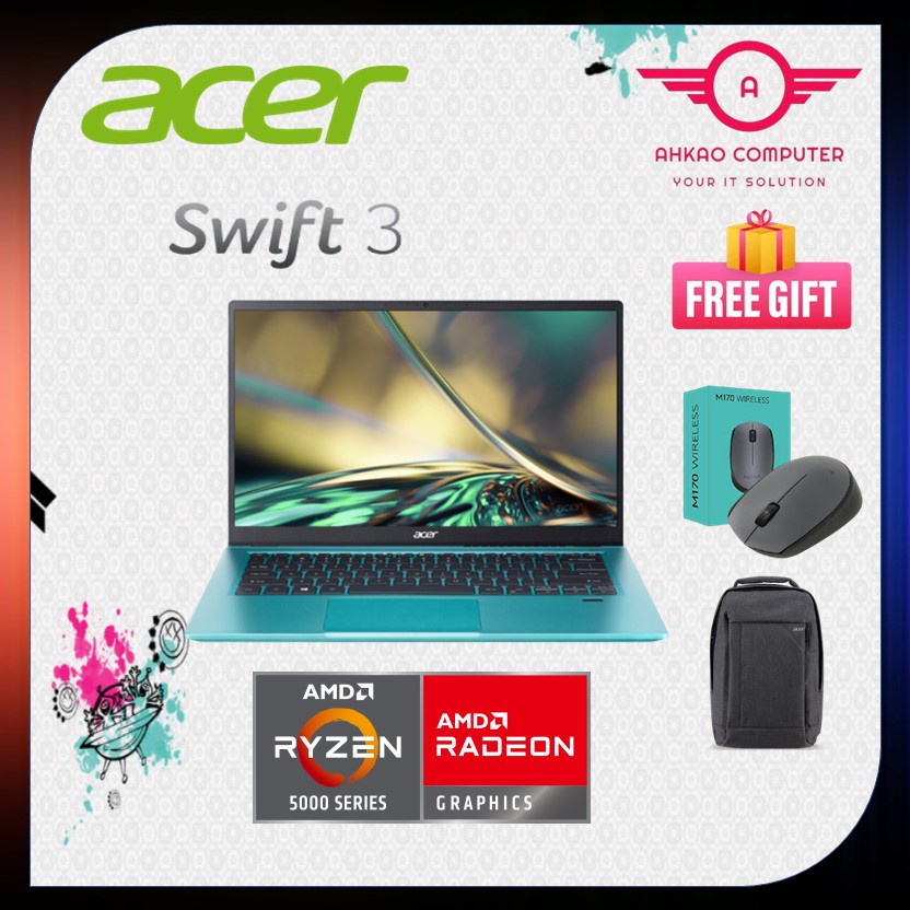Acer Swift 3 SF314-43-R5QX 14'' FHD Laptop Electric Blue ( Ryzen 5 5500U, 8GB, 512GB SSD, ATI, W11, HS )2 Year Warranty