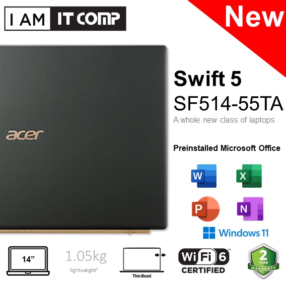 Acer Swift 5 SF514-55TA-537X / SF514-55TA-70TD Touch Screen Laptop (i5-1135G7,i7-1165G7/8GB,16GB/512GB/W11)FOC Mouse&Bag