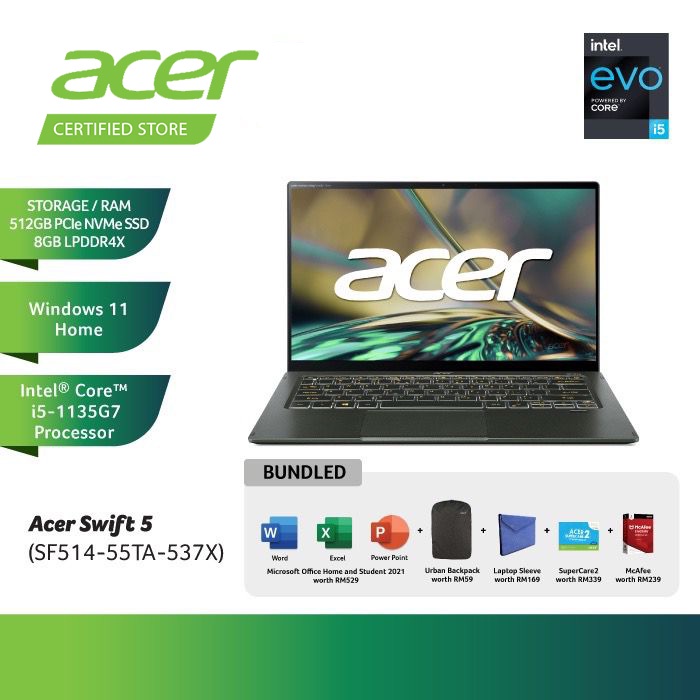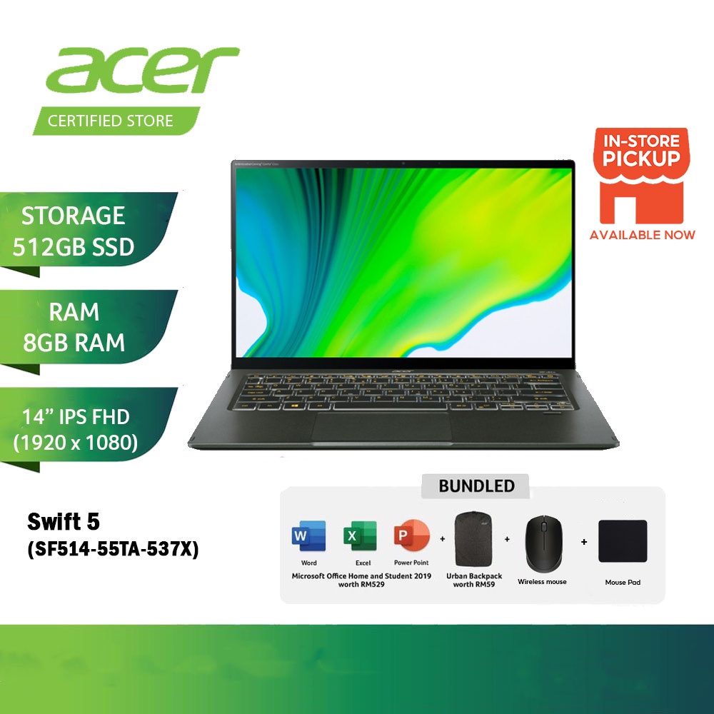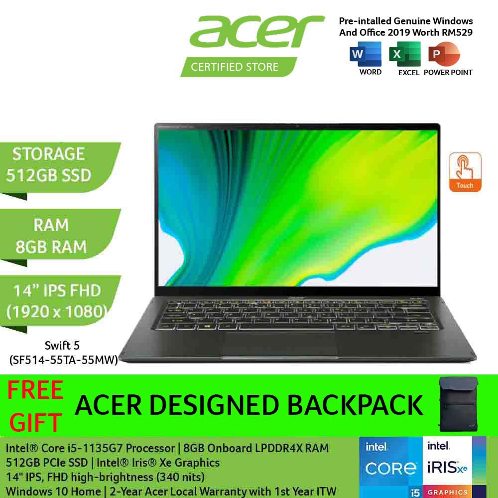 Acer Swift 5 SF514-55TA-537X Touch Screen Laptop - Green (14"/I5-1135G7/8GD4 512SSD/With Office OPI)