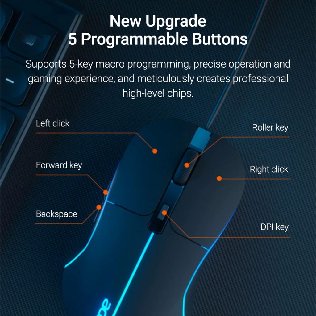 Acer USB Wired Mouse M115 Colorful Light Effect 800/1600/2400/3200DPI Comfortable and Durable For E-sports, Office, Learning