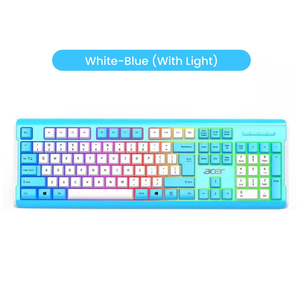 Acer Wired Keyboard OKB0A0 With Backlight, 104 Keys Layout, USB Interface, Ergonomic Design, For Office/Learning/Gaming