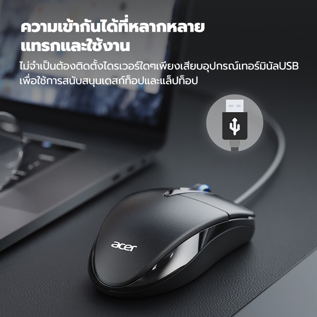Acer Wired Mouse M119 Silent Buttons Skin-like Texture Office Study