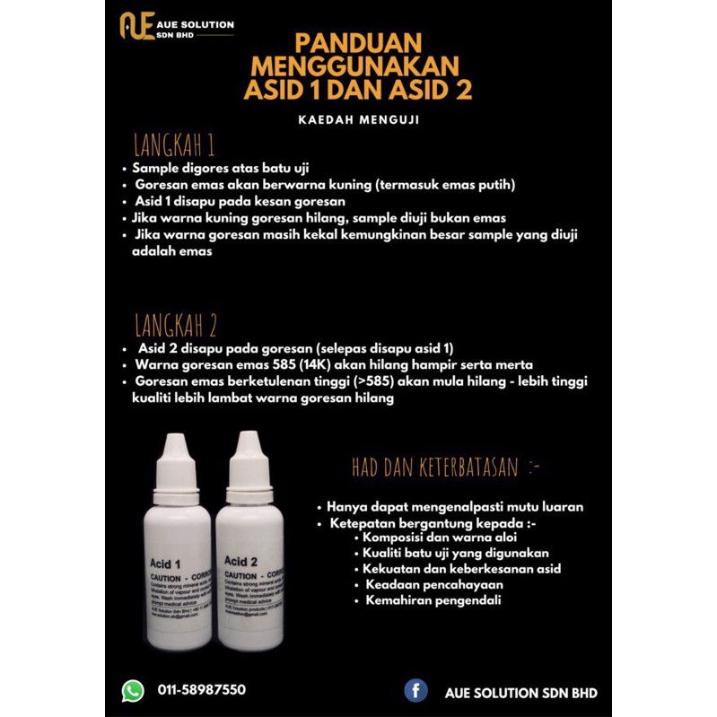 Acid 1 dan Acid 2 (30ml) Gold Testing Acid / Asid Ujian Emas Alat Uji Emas