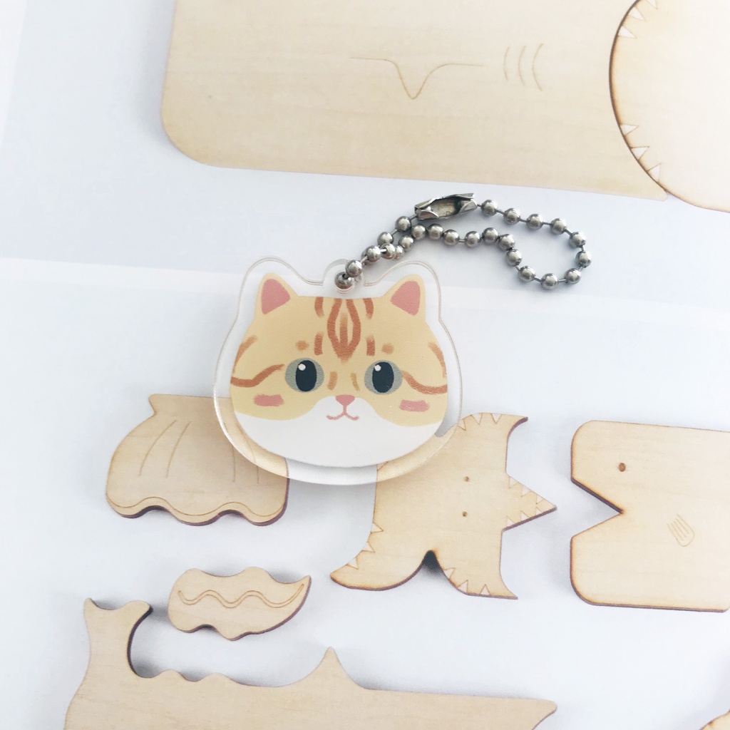 Acrylic Keychain Cute Cartoon Cat Key Ring Cartoon Earphone Pendant Decoration Gift