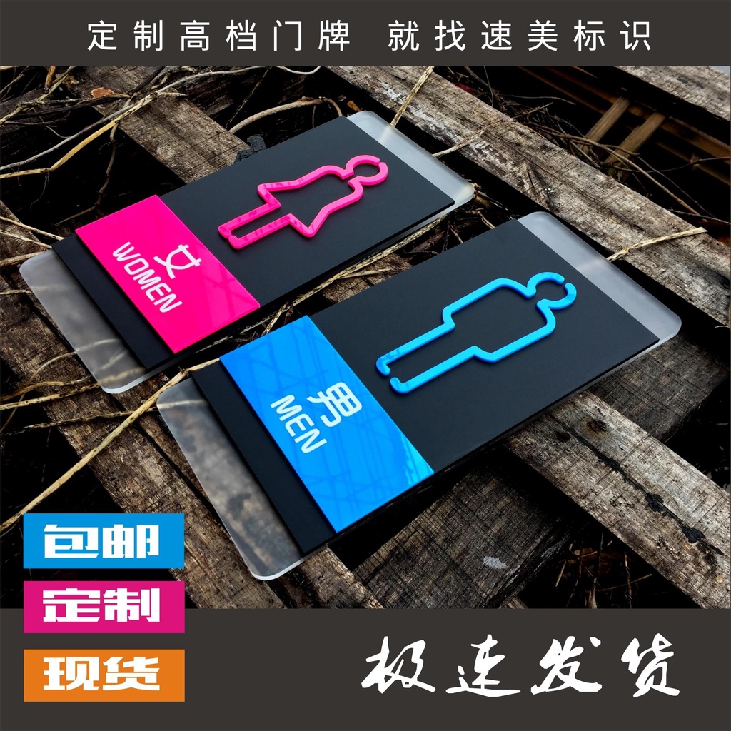 Acrylic Men's and Women's Washrooms Signboard in TotalWCLogo Creative Toilet Sign Toilet Door Plate Customization
