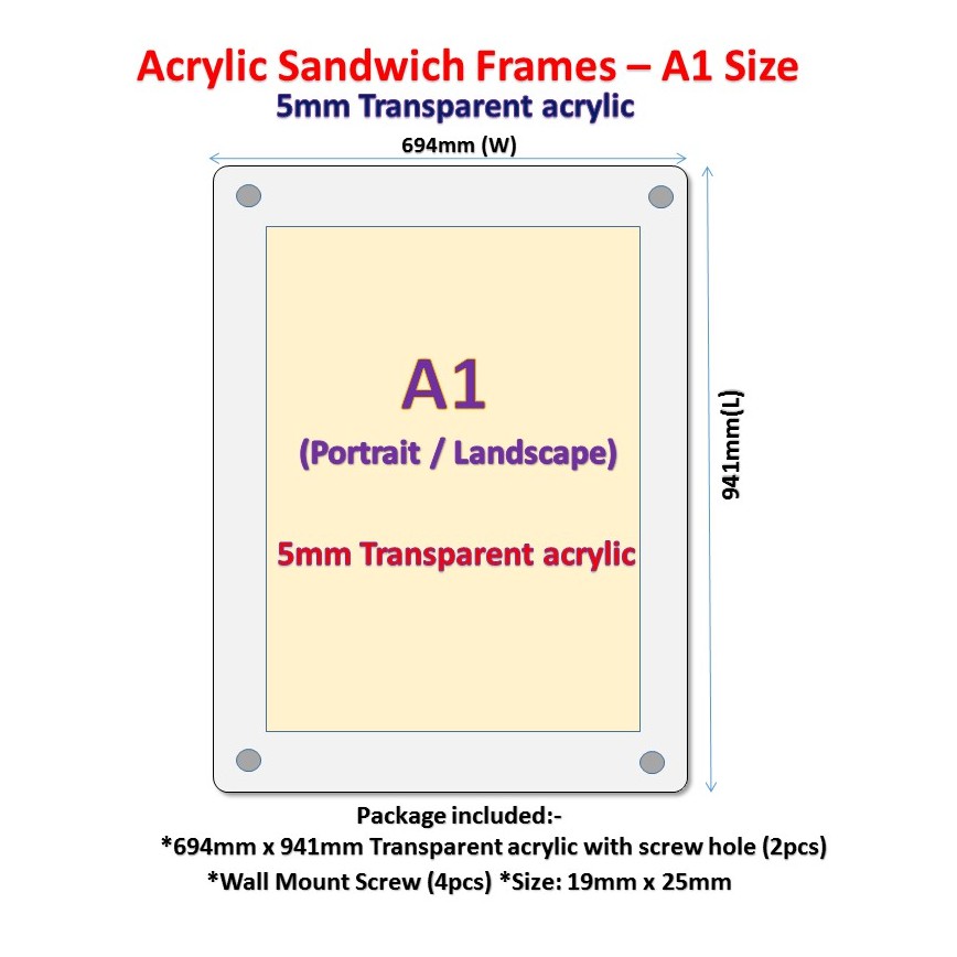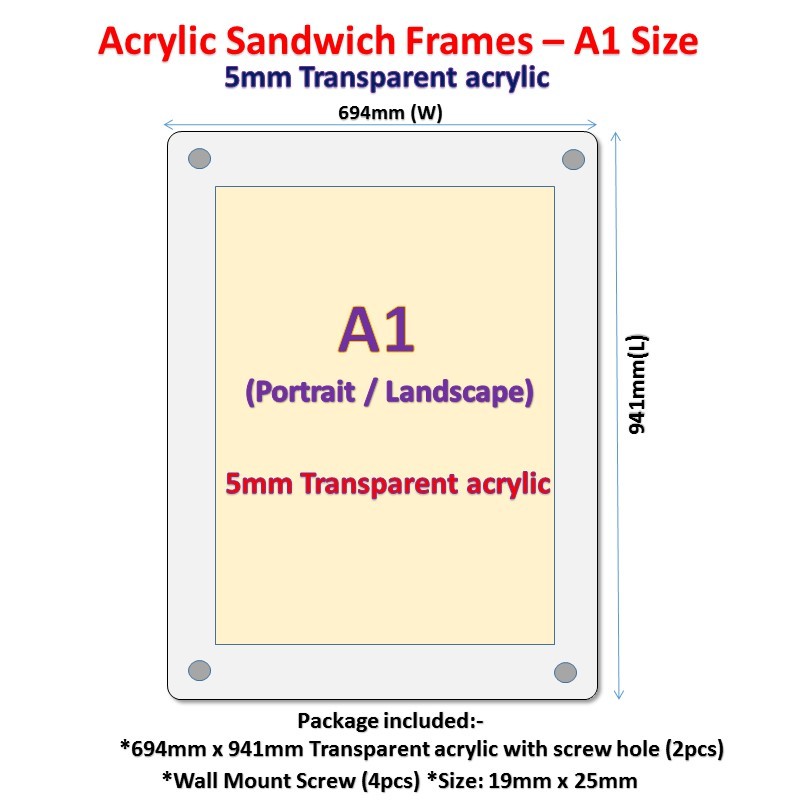 Acrylic Poster frame -Fit A1 size poster - Rounded corner-home/office wall display frame/Sandwich frame-Grade A acrylic