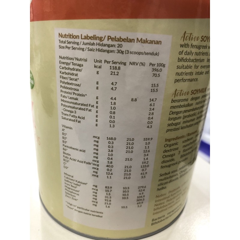 Active soy milk plus (600g)