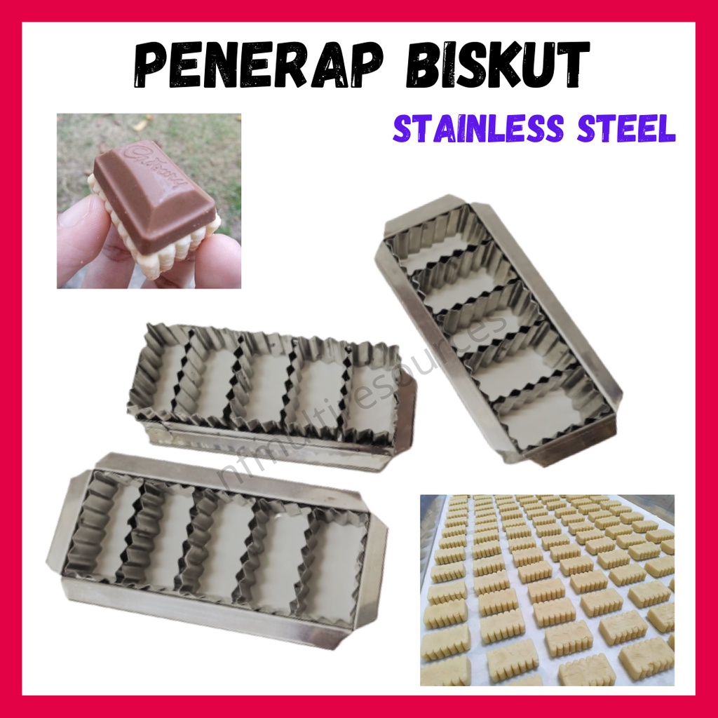 Acuan Biskut Penerap Kembar Gerigi Penekap Biscuit Mold Cookies Cutter Stainless Steel Acuan Almond Petak Rectangle