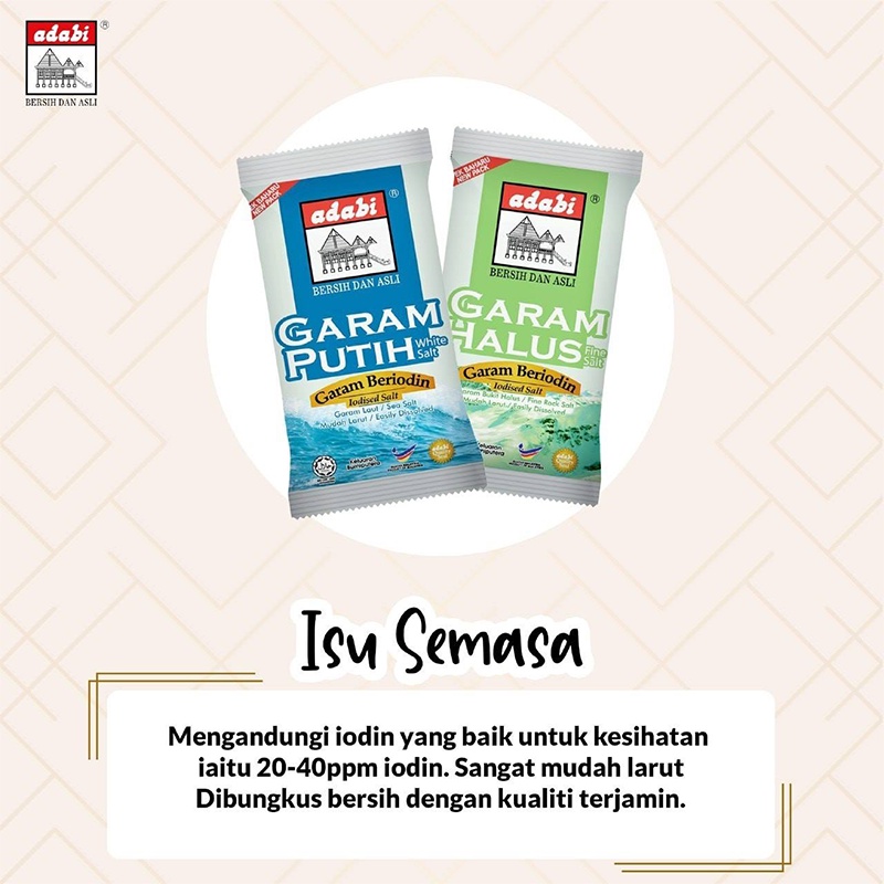 Adabi Garam Halus 400g Ready Stock Fine Rock Salt Garam Bukit Halus Mudah Larut