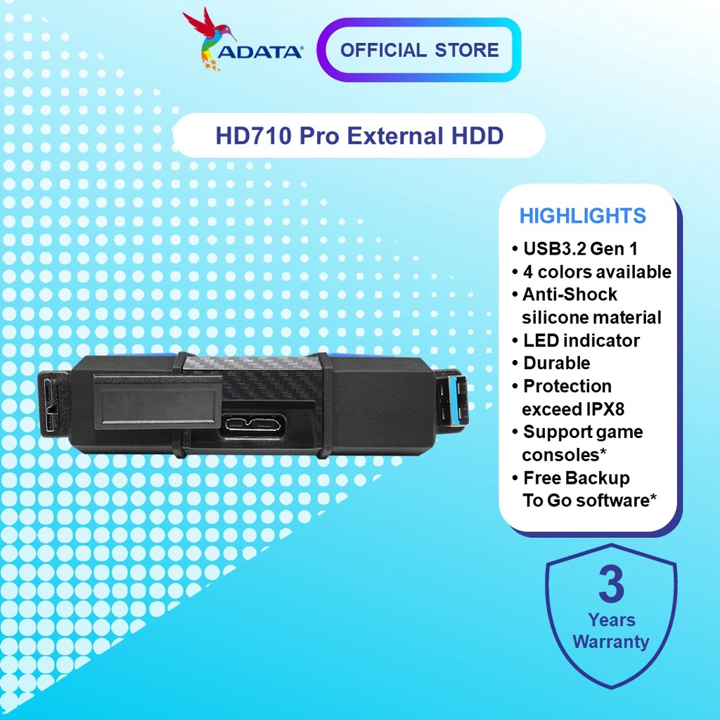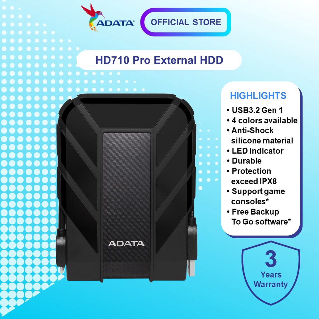 Adata EXT HDD Durable USB3.2 - Black / Blue / Red / Yellow (1TB/2TB/4TB) HD710PRO