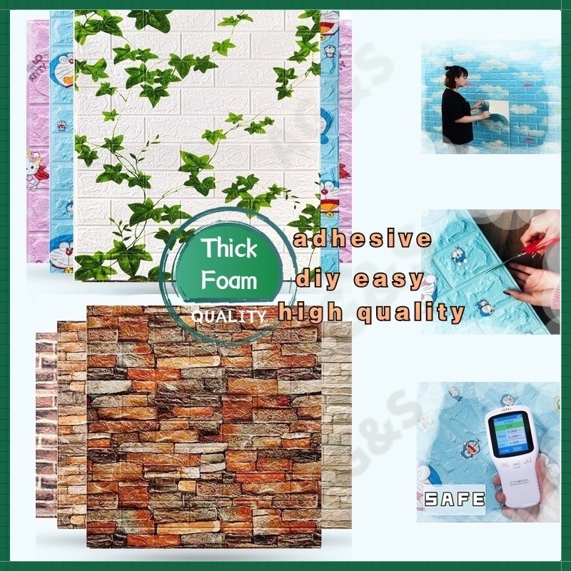 Adhesive Foam Wallpaper Dinding Wall Decor Easy Remove Water Repellant Wall Stickers Wallpaper Design Wall Decor For Home Bedroom Living Room