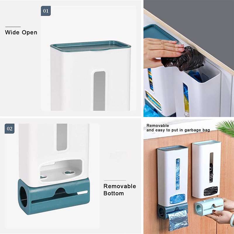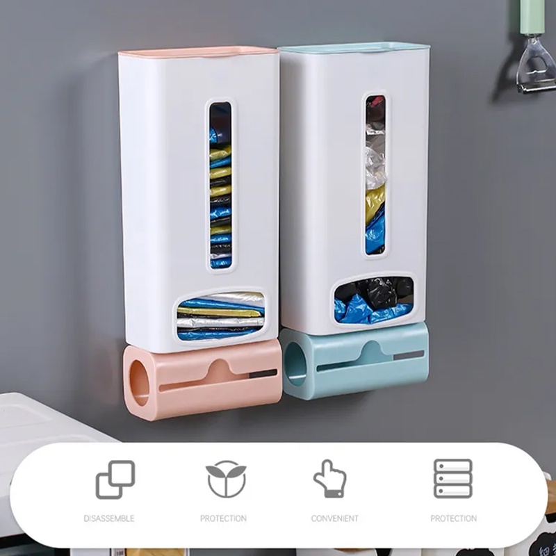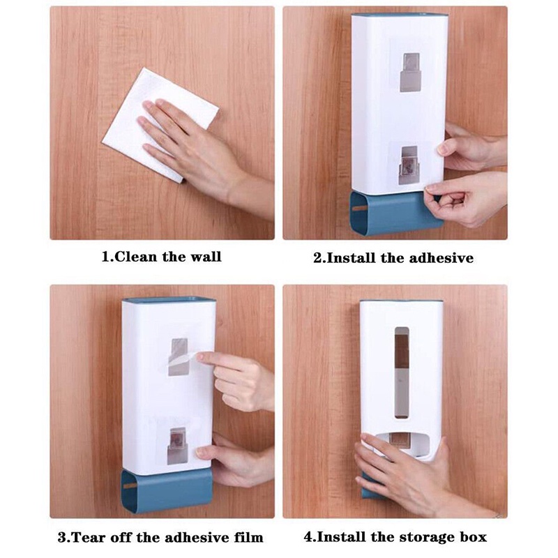 Adhesive Wall Mount Grocery Plastic Bag Holder Hangable Rubbish Trash Garbage Storage Dispenser Box