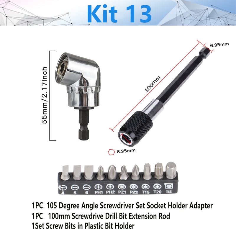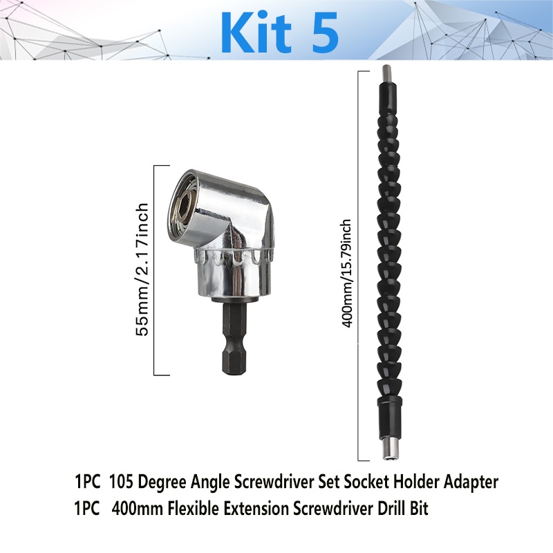 Adjustable 105 Degree Right Angle Screwdriver Tool Set 1/4 Hex Shank for Electric Drill Screwdriver Bit Tools