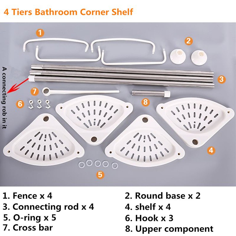 Adjustable 4 Tier Serbaguna Bathroom Rack Shower Rak Bathroom Corner Toilet Kitchen Shelf Storage Organizer