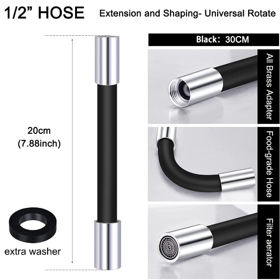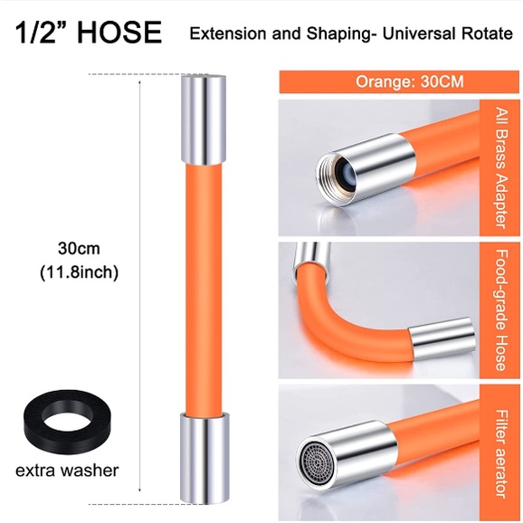 Adjustable Water Tap Extension 360 Rotate Faucet Extender Free Bending Flexible Silicone Tupe Pipe Paip Sinki Sambungan