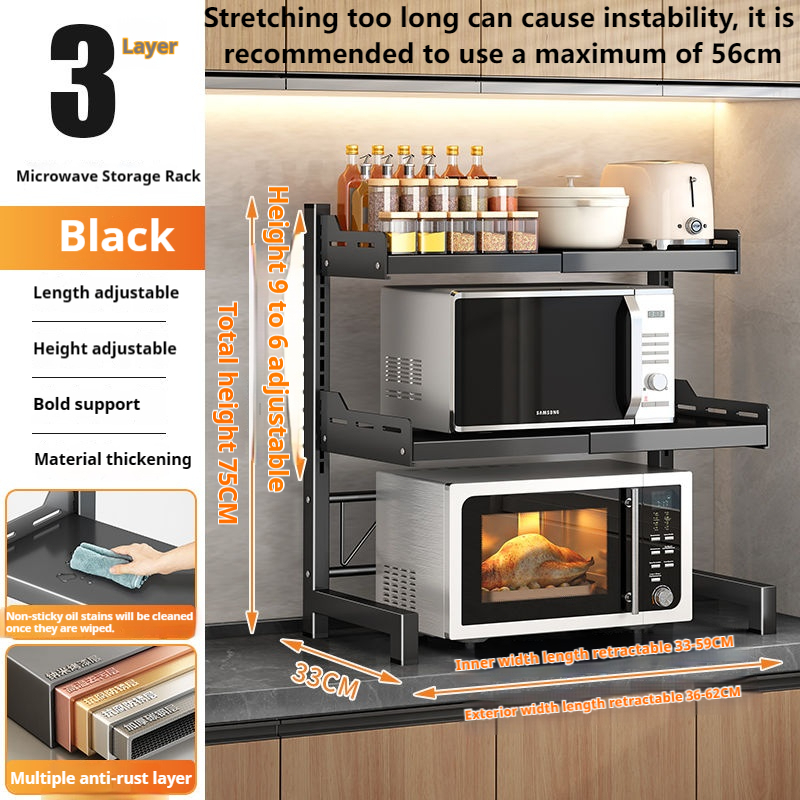 Adjustable kitchen rack 2/3 layer microwave oven rack kitchen supply seasoning rack stainless steel