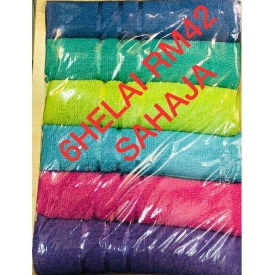 Adult Bath Towel 27 x 54 / 70 CM X 140 CM 100% COTTON (415 GRAMS) ( 6 piece's 6 color 42 RM ) GIFT PACK ( Serap air) Hi