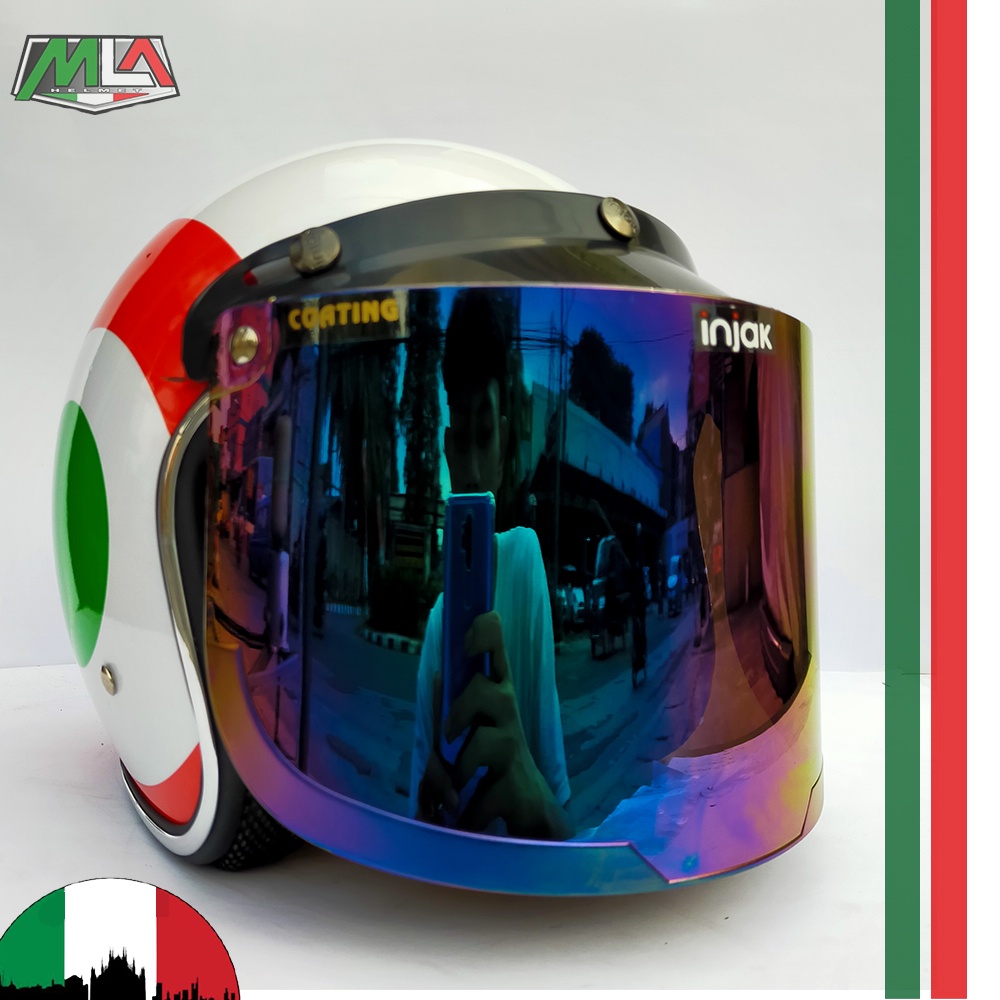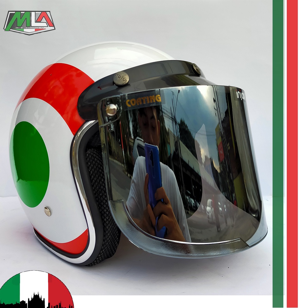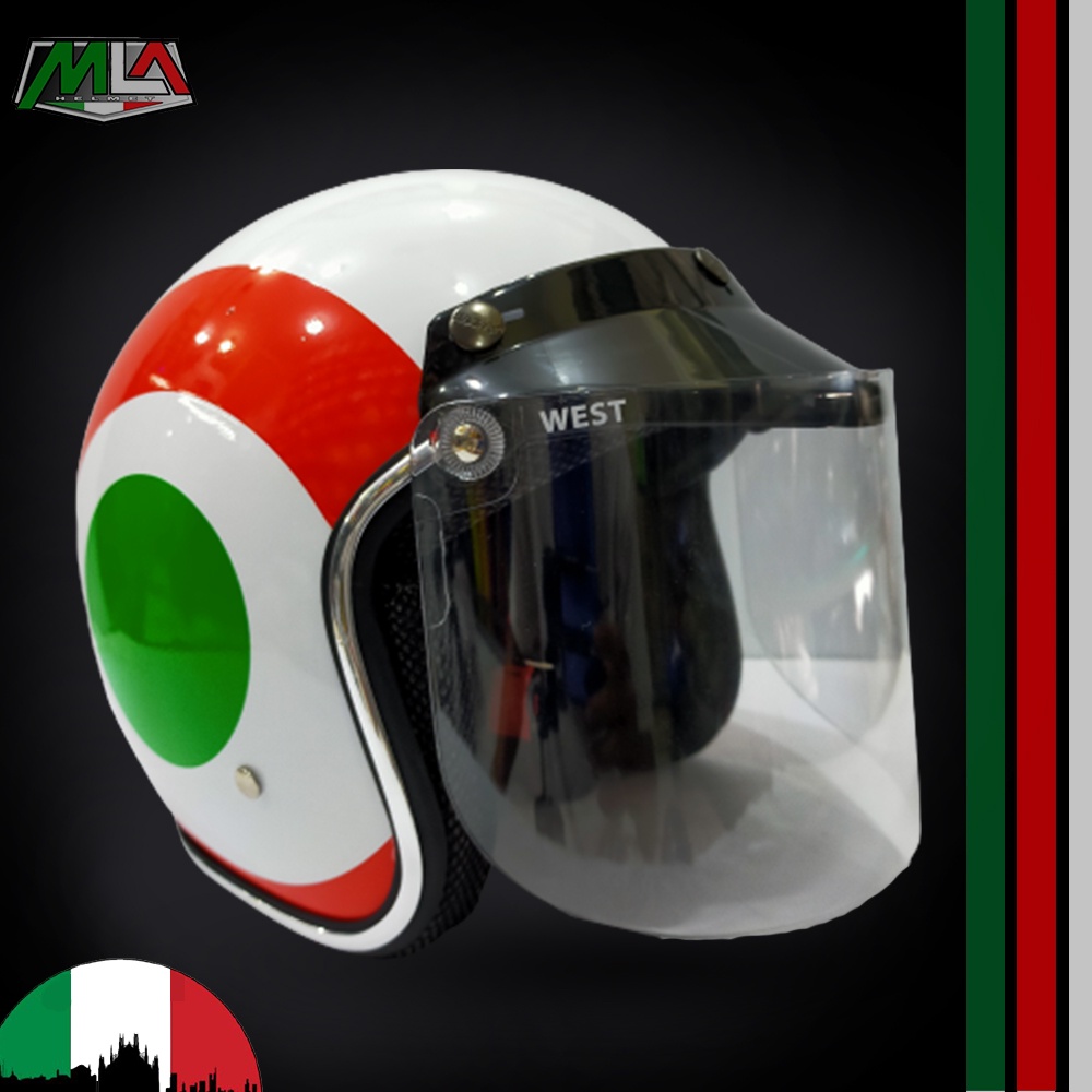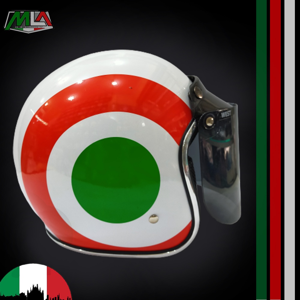 Adult Bogo Helmet with Italian Vespa Flag Motif Chrome Trim PREMIUM SNI