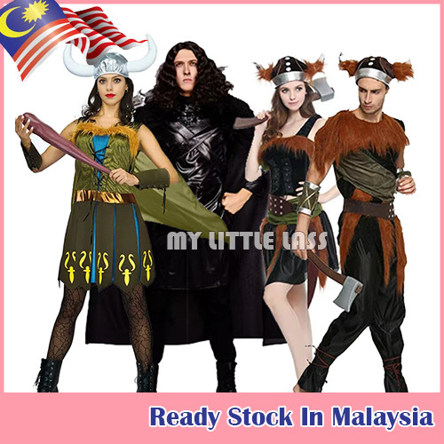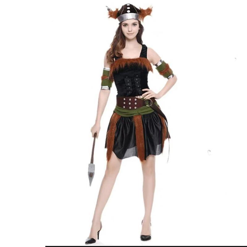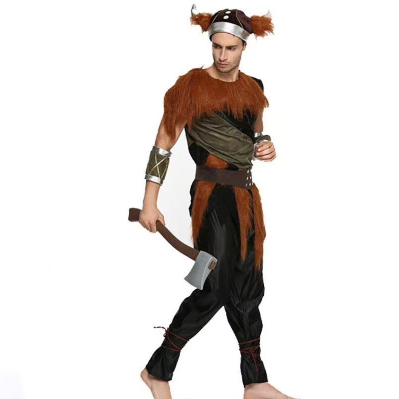 Adult Nordic Warrior Dress Up Cosplay Costume Viking Mascot Savage Clothes