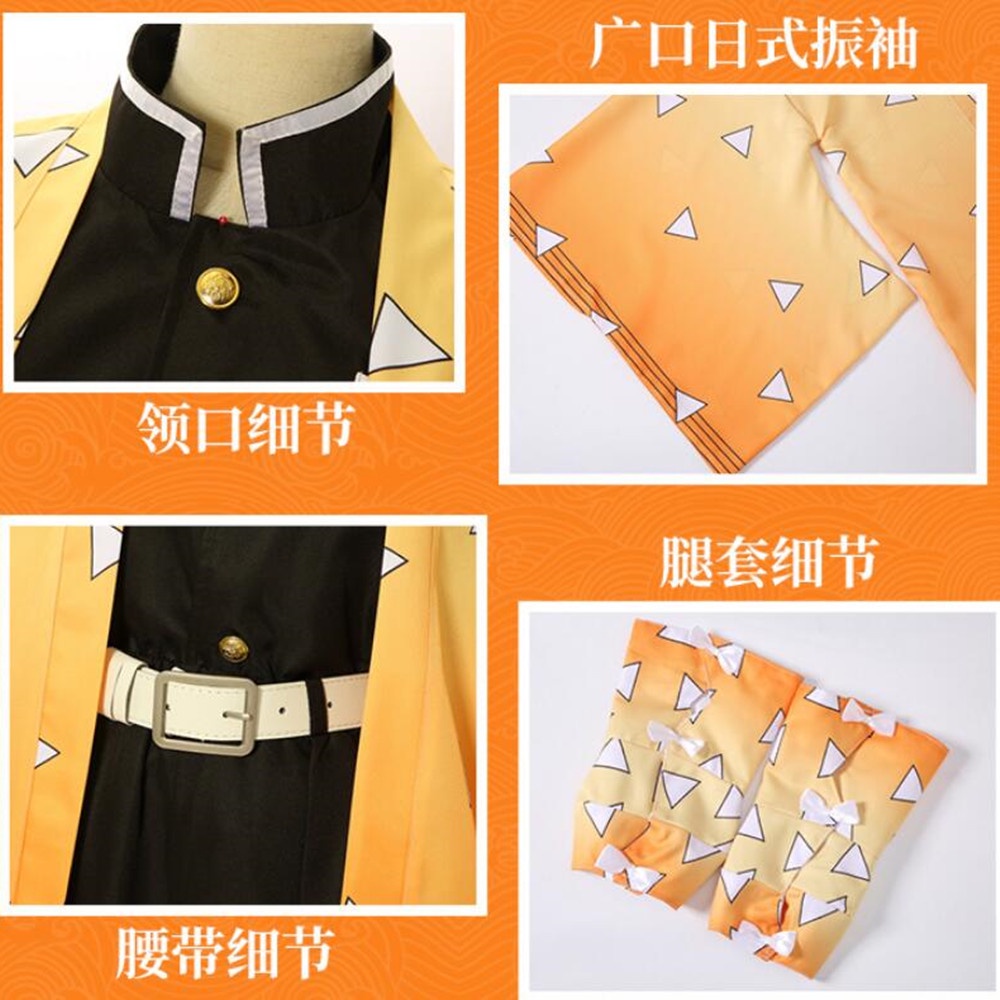 Adult and kids Anime Demon Slayer Cosplay Costume Agatsuma Zenitsu Kimetsu no Yaiba Men Kimono Yellow Uniform Suit