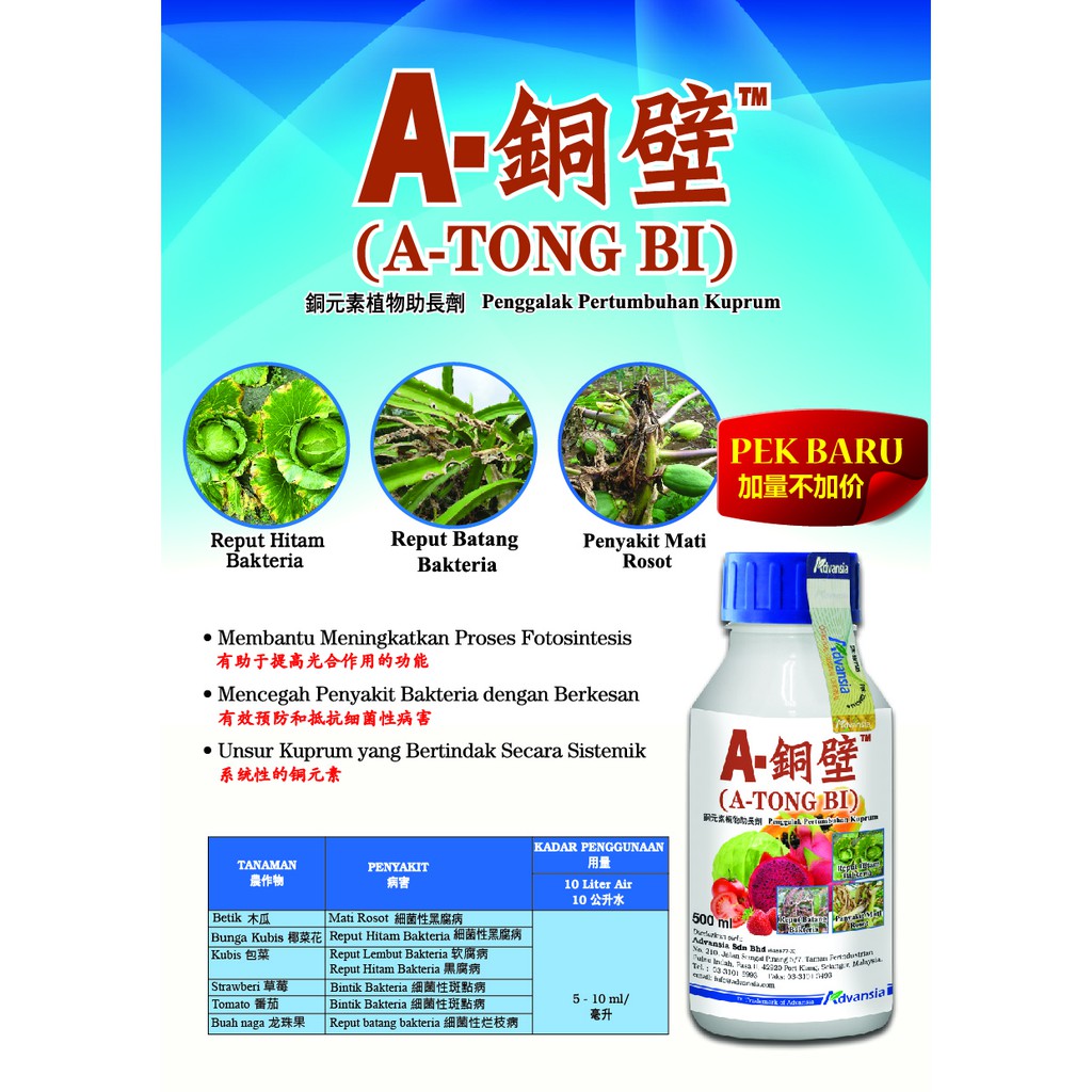 Advansia Plant Growth Agent with Copper elements Penggalak Pertumbuhan Kuprum 铜元素植物助长剂 A-Tong Bi A-铜壁 (500ml)