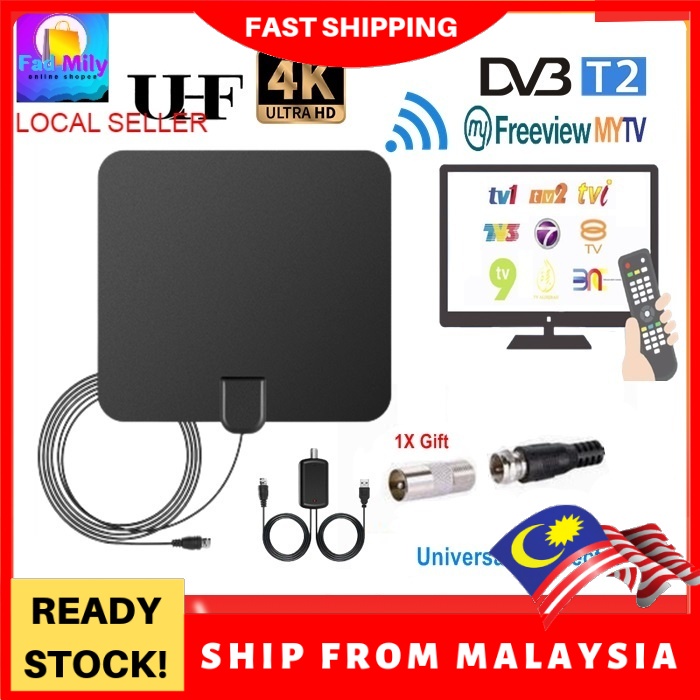 Aerial Digital Antenna UHF Indoor Built-in Booster 50 Miles @ 80km For MYTV Myfreeview