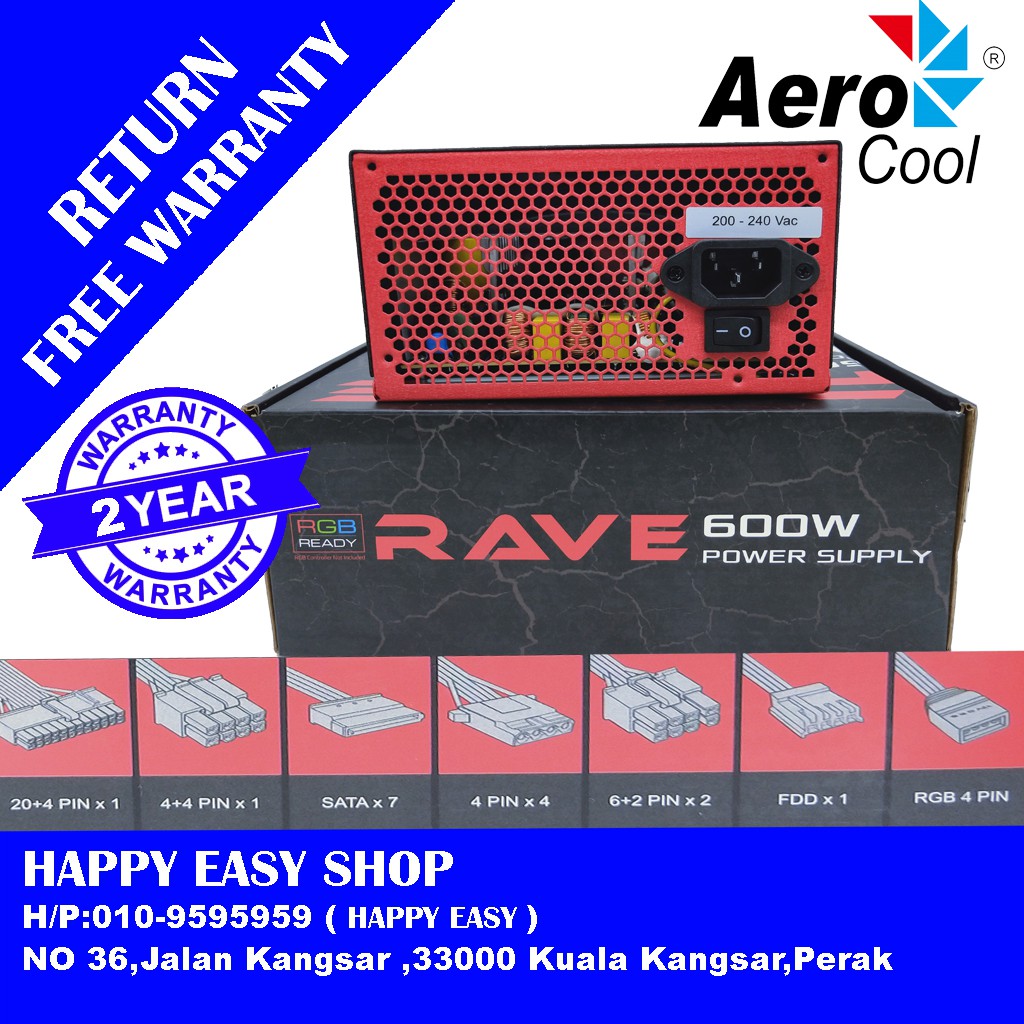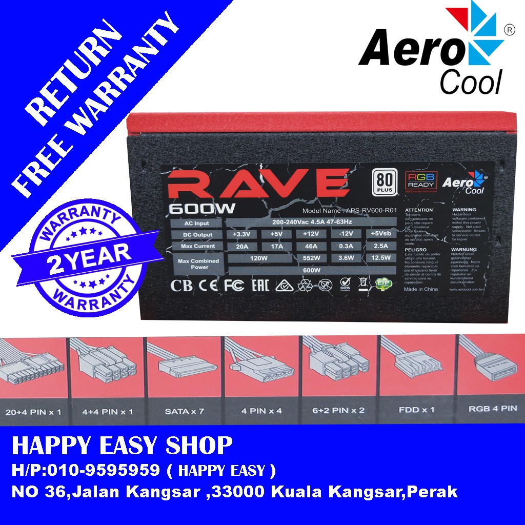 Aero-cool Rave 600W RGB Ready 80 PLUS Gaming PSU Power Supply