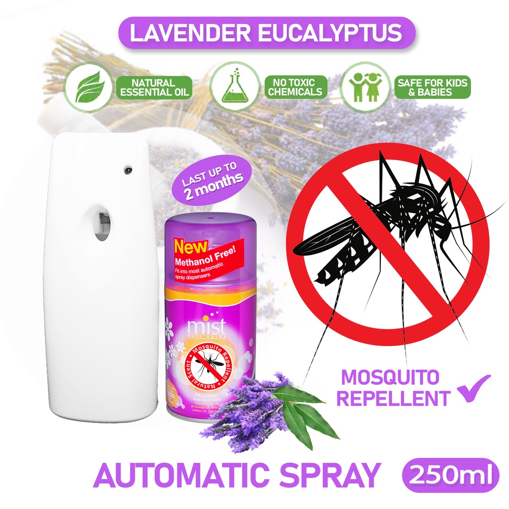 Aerofume Automatic Air Freshener Dispenser Machine + 1 Lavender Eucalyptus Refill (250ml) Mosquito Repellent