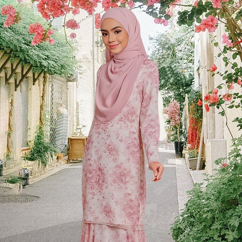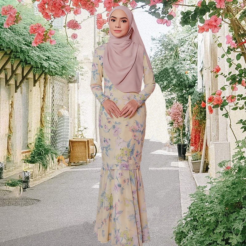 Afa Design Floral Baju Kurung Moden Payung Kain Chiffon Kurung Duyung Moden Pleated Kurung Duyung Kembang Bridesmaid