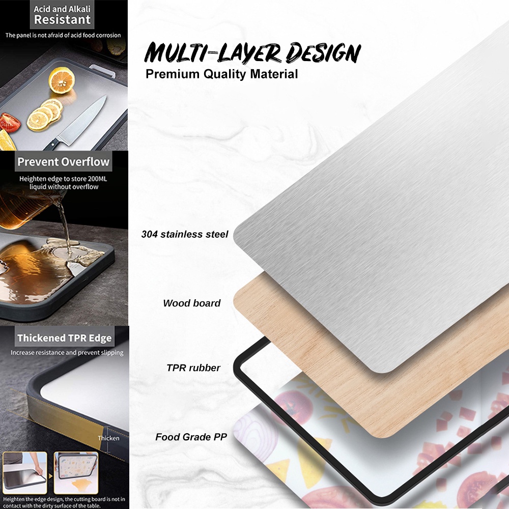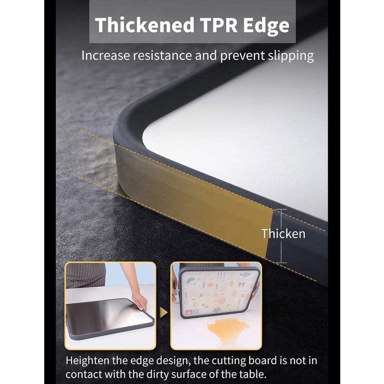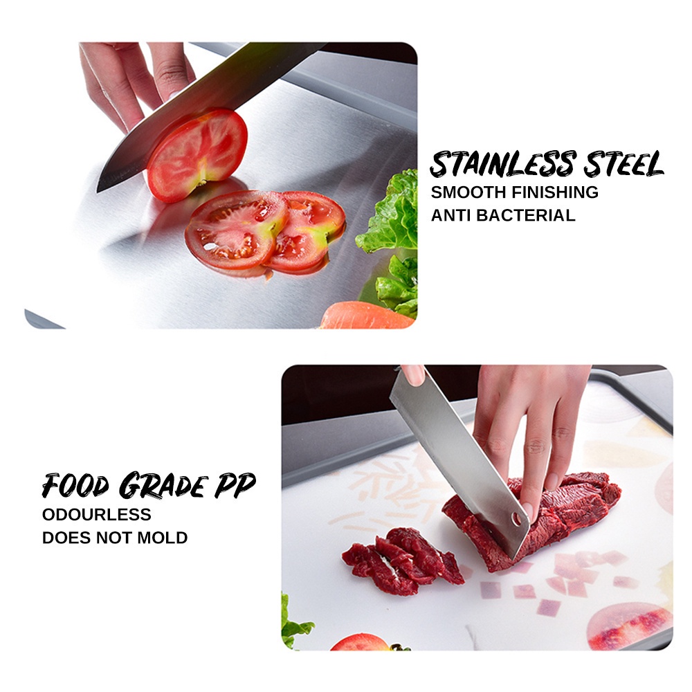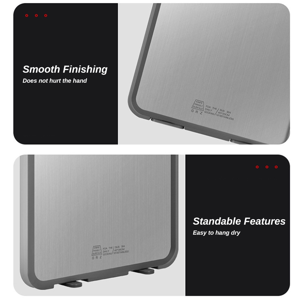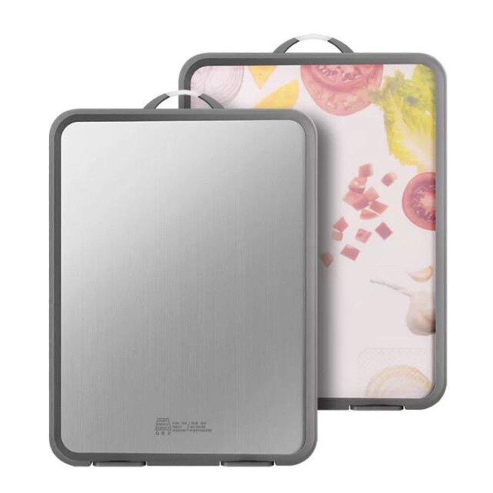 ZPLUS Double Sided SUS304 Stainless Steel Chopping Board Dual Side Standable Antibacterial Kitchen Cutting Board