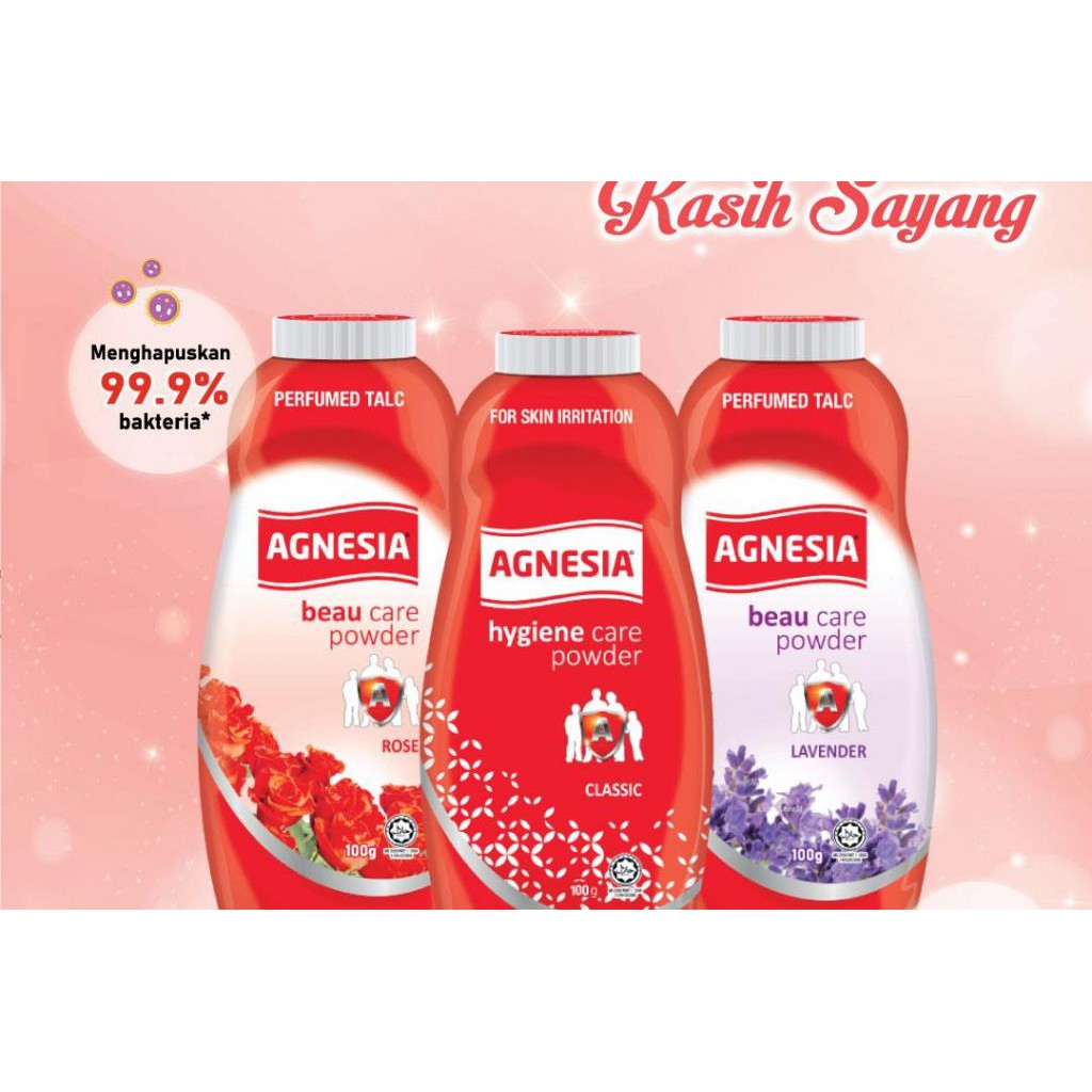 Agnesia Antibacterial Powder 50gm / 100gm / 300gm - Original/Lavender/Rose/Cooling