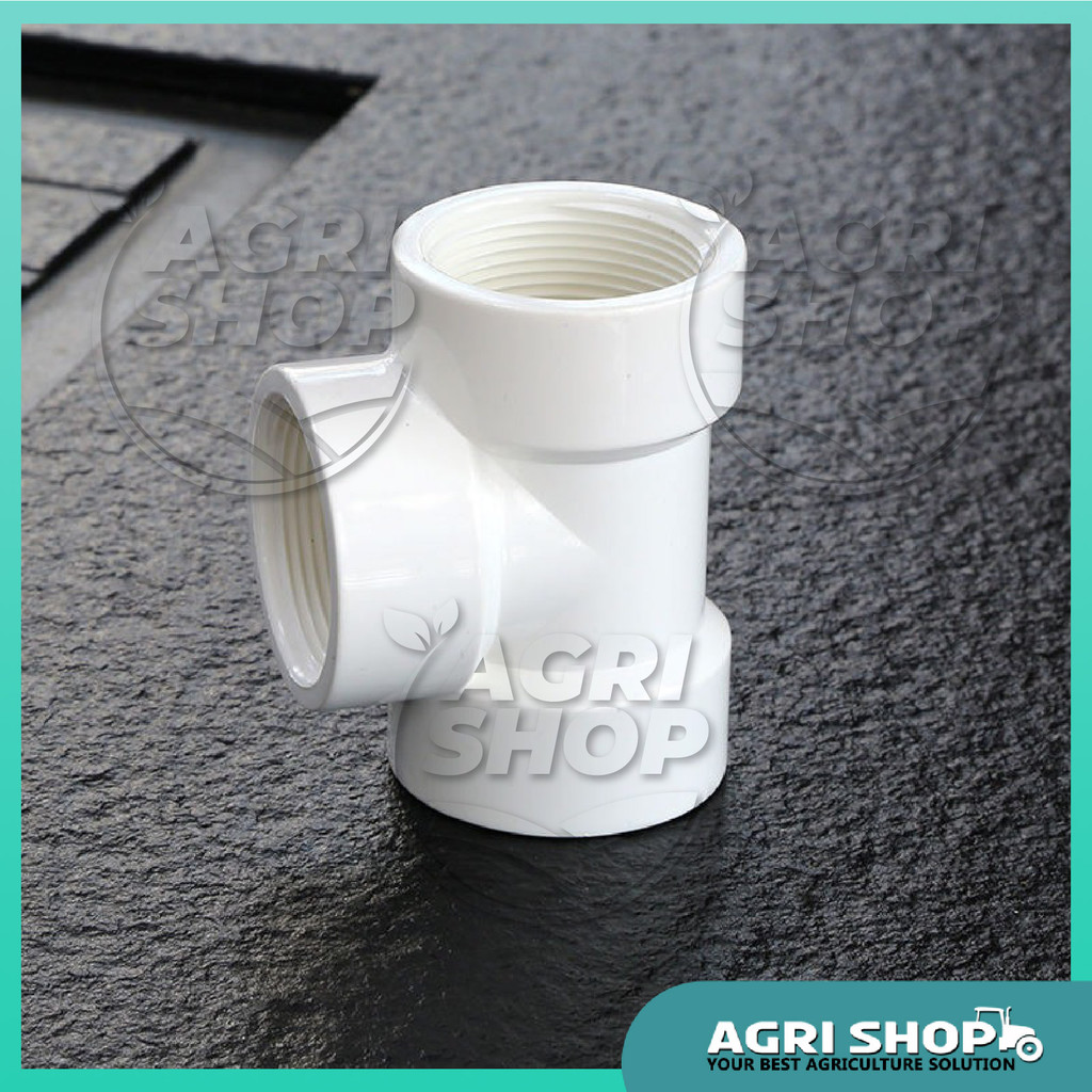 Agrishop 1/2" 1 PVC Threaded Tee Connectors Garden Water Pipe Fittings Adapters