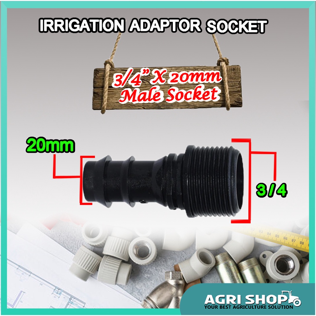 Agrishop 20mm X 3/4" Male Threaded Director Irrigation Hose Pipe Connector Socket Adapter Fertigasi