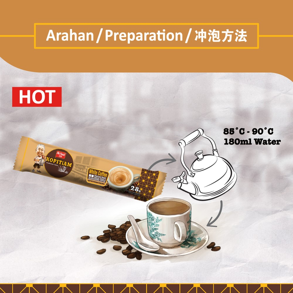 Ah Huat Kopitiam Kopi White Coffee Charcoal Roast 3 in 1 (28g x 15's) 亚发炭烧