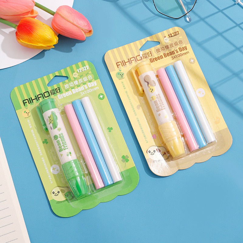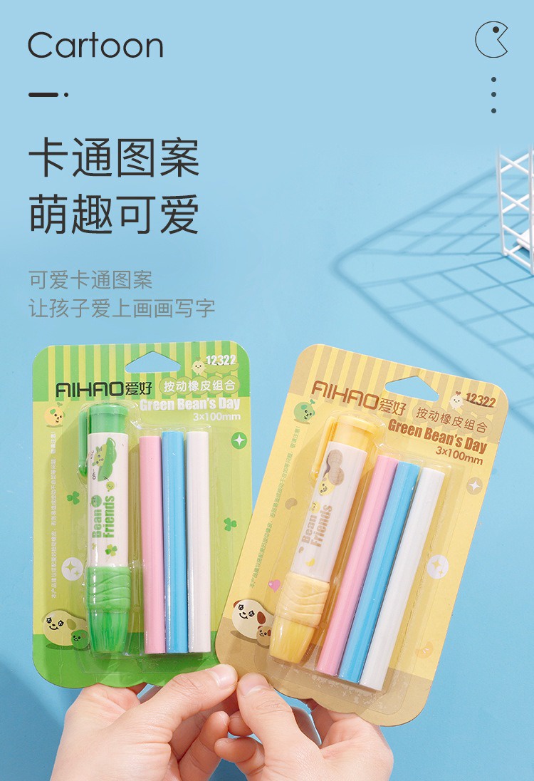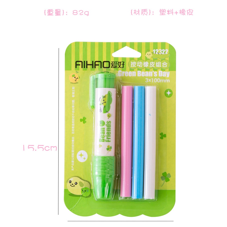 Ai Hao 12322 Set Pen Pemadam Mekanikal Pemadam Mekanikal dengan Pemadam Isi Semula Pemadam Alat Tulis Kanak-kanak