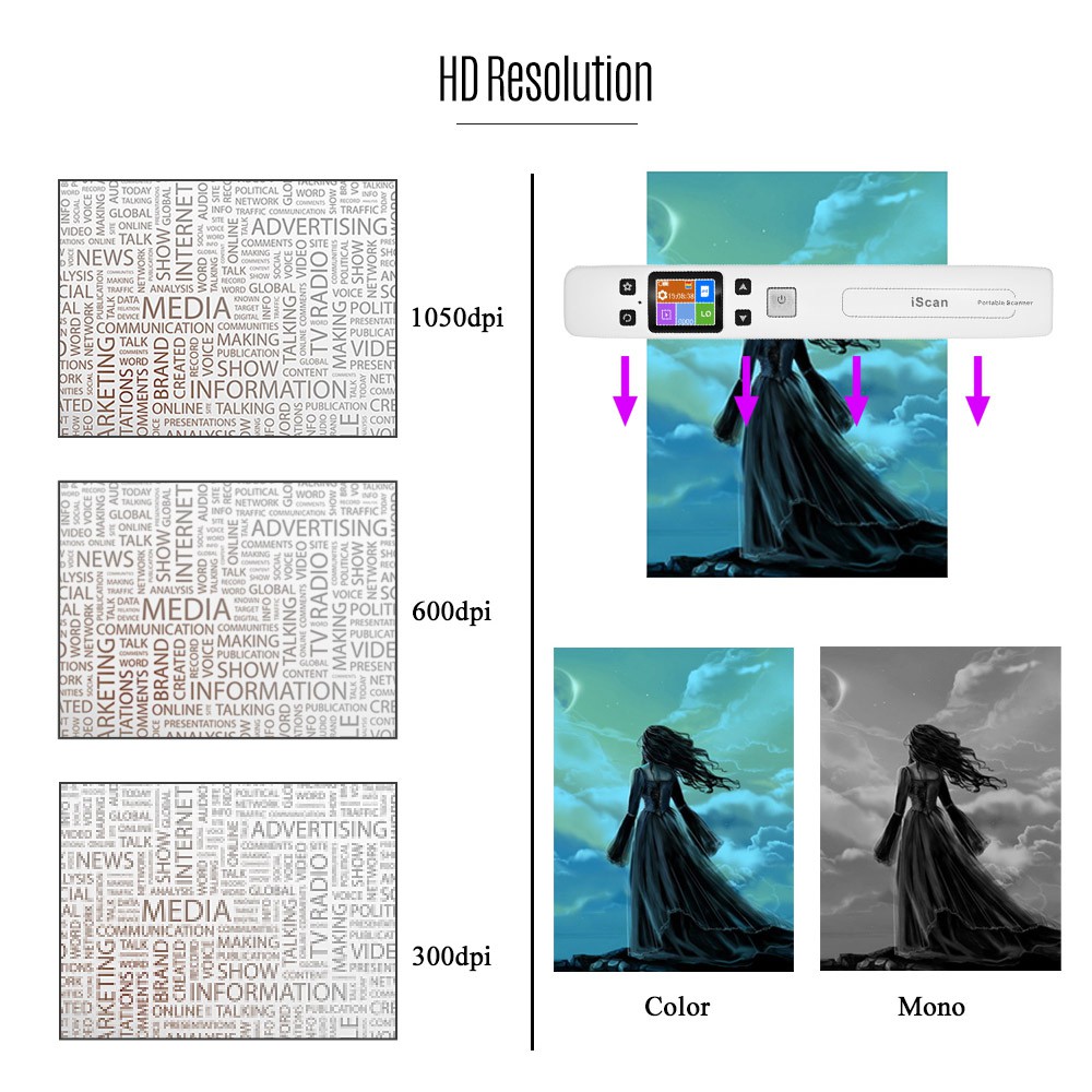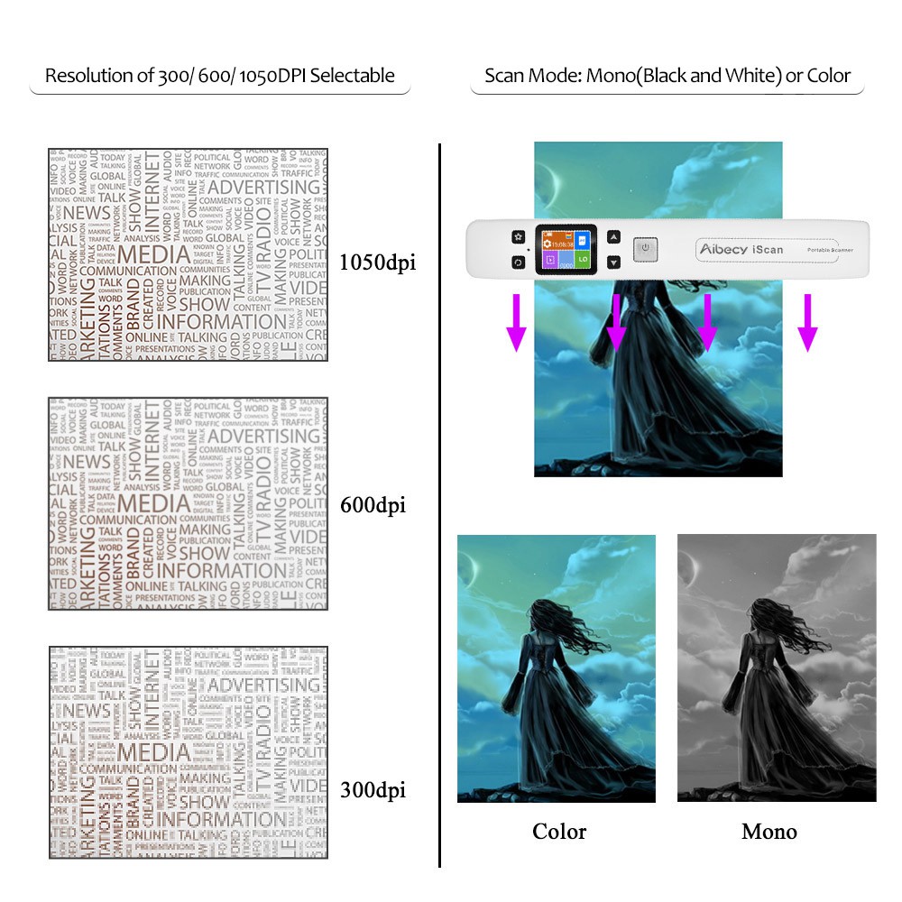Aibecy iScan02 Portable Handheld Wand Document/ Book/ Images Scanner 1050DP