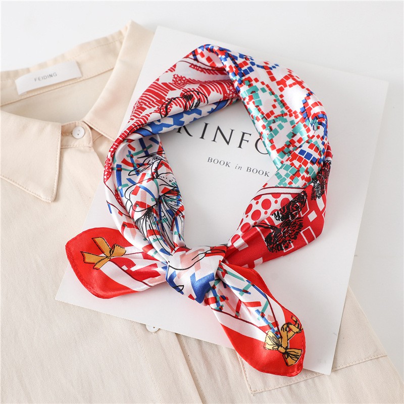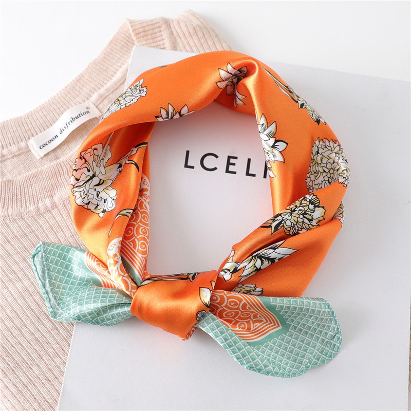 Aibins A-60CM Porcelain Small Selendang Summer and Fall Women Selendang Printed Satin Square Selendang Muslim WJ1071-A