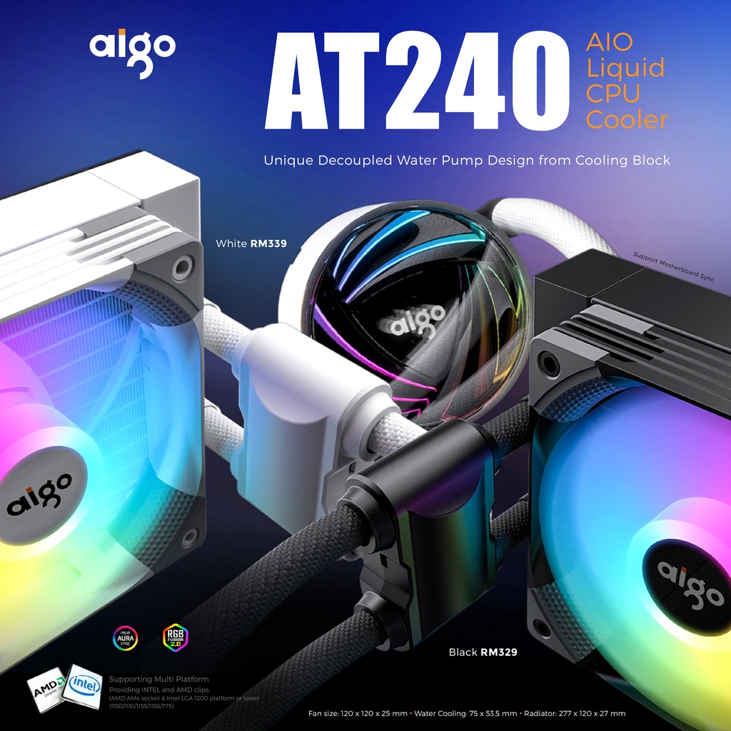 Aigo AT Series A-RGB AIO Liquid CPU Cooler [ AT-240/AT-360] [ BLACK/WHITE]
