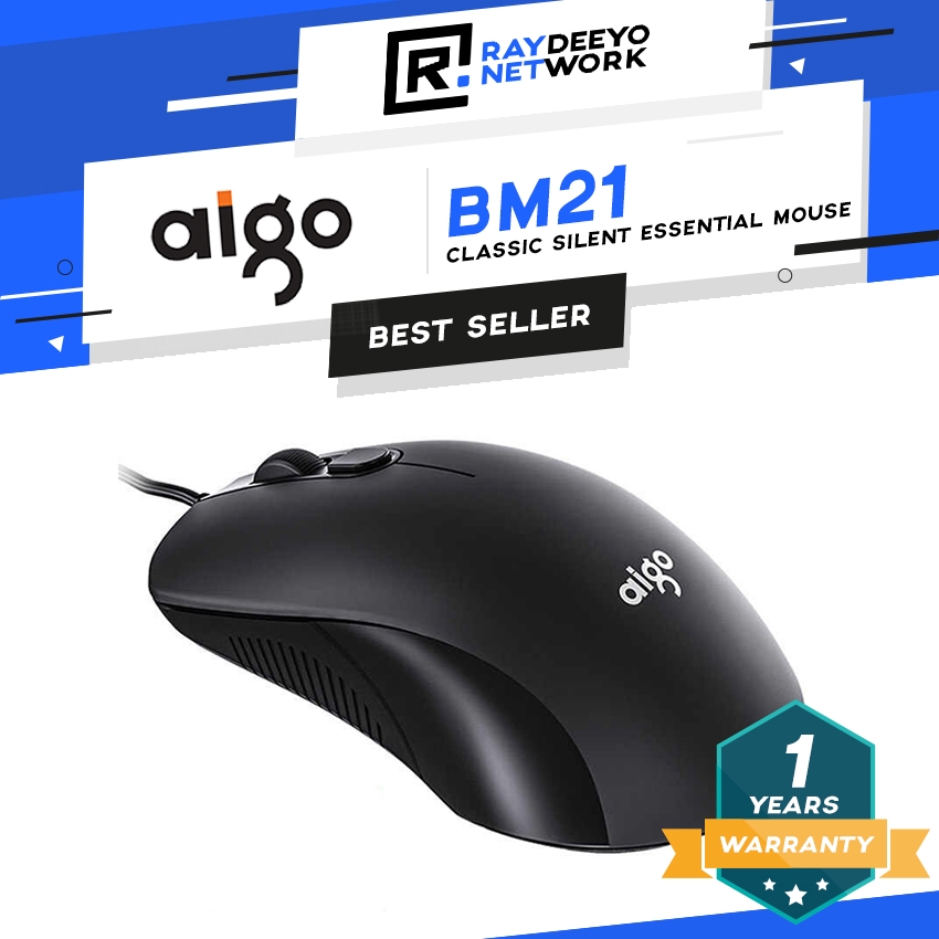 Aigo BM21 Wired Optical Silent Mouse [Ergonomic/2400 DPI/4 Buttons]