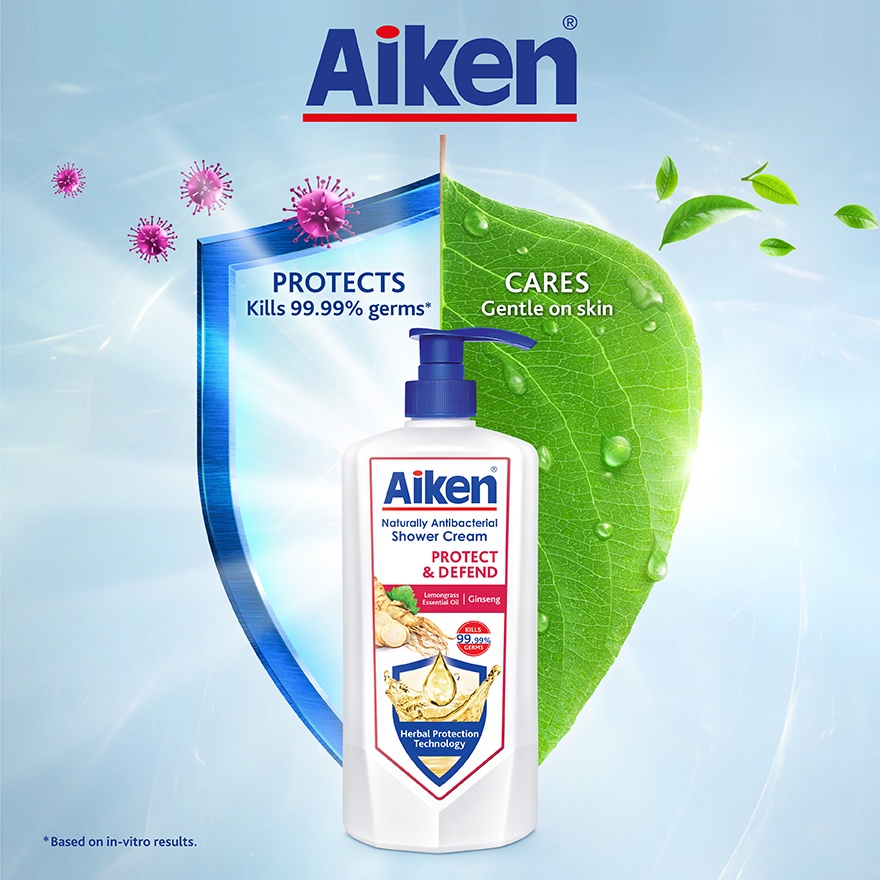 Aiken Antibacterial Shower Cream Protect & Defend (950g/800g) | Kills 99.9% germs | Healthy Skin| Ginseng