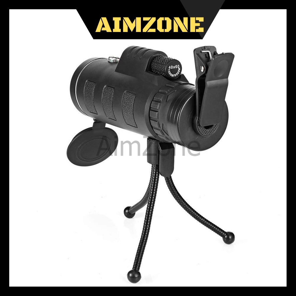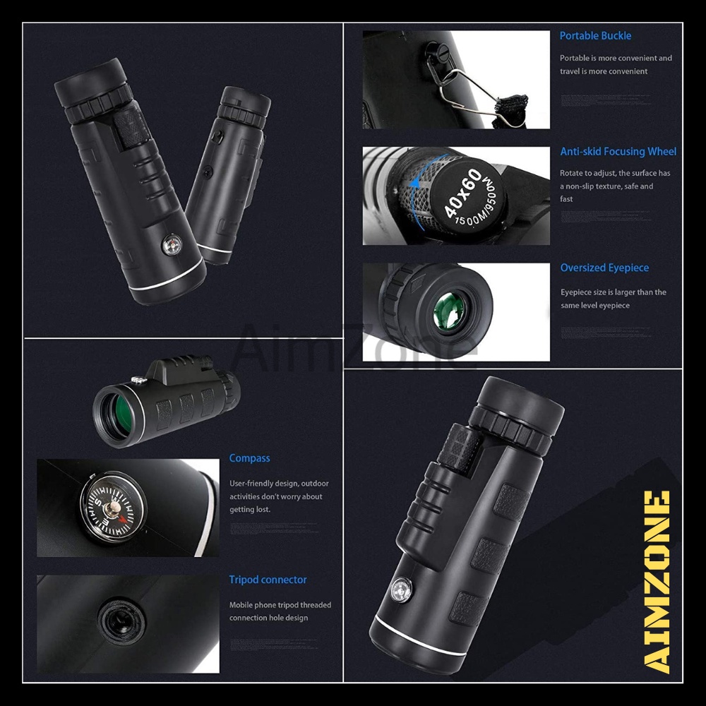 AimZone 40x Power Zoom Monocular 40x60 HD Compact Handheld Telescope with Phone Clip Tripod Compass for Sightseeing