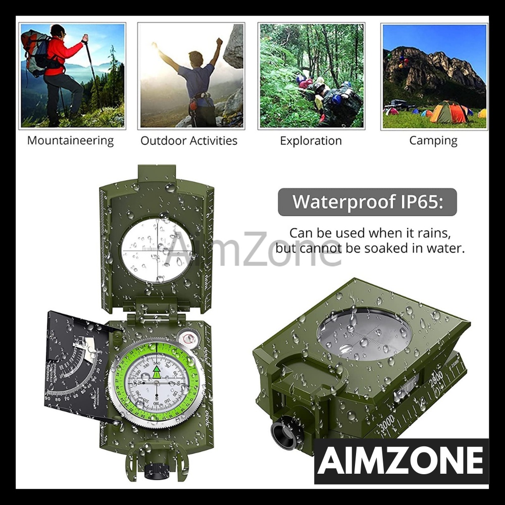 AimZone Millitary Compass with Lensatic Sighting Inclinometer Fluorescent Scale Waterproof Navigation Kompas for Hiking