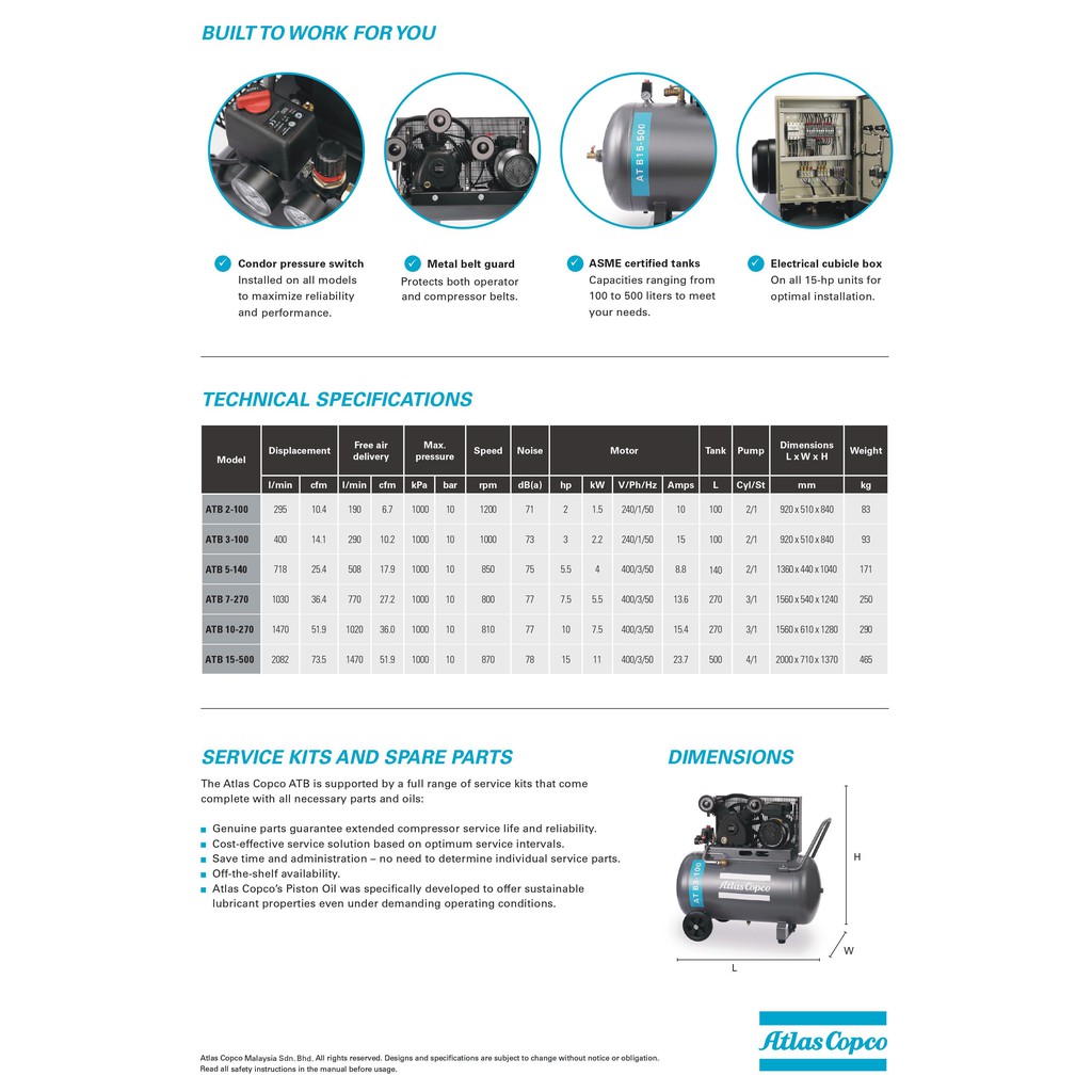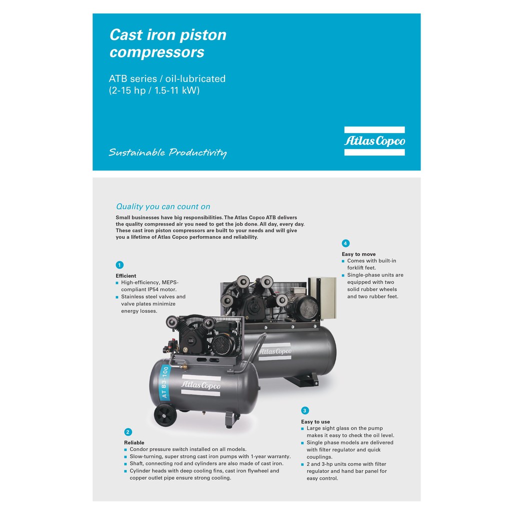 Air Compressor Atlas Copco 15HP Cast Iron Piston Compressor (ATB15-500)