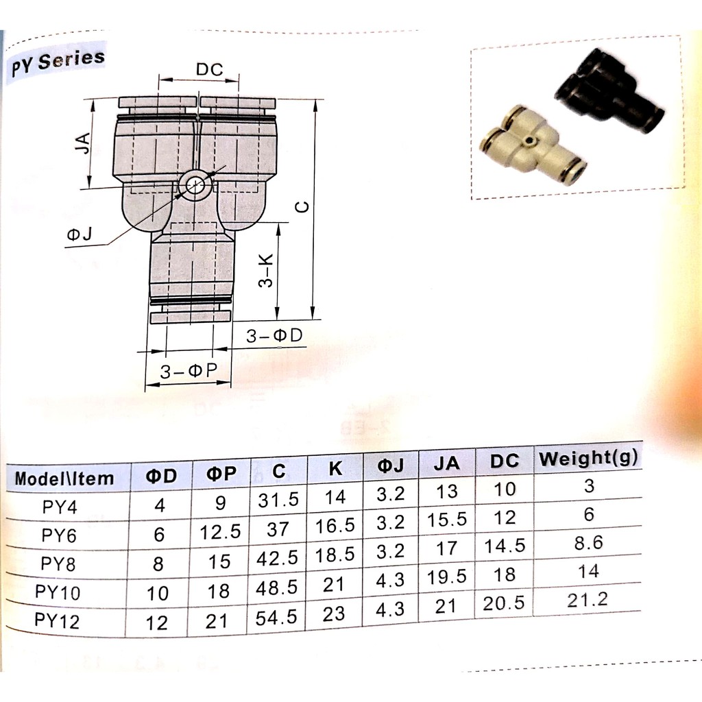 AirTac Pneumatic Fitting PY Union PY4D PY6D PY8D PY10D PY12D Union Y Air Fitting SMC Pneumatic Fitting