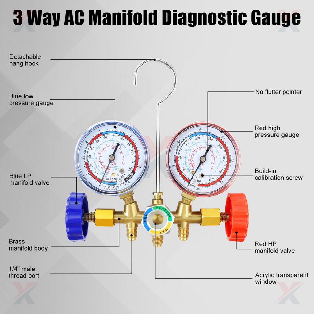 Aircond Meter Set R410a R12 R22 R134A AirCond refrigerant gas meter gas charging Meter Gauge double/single check gas