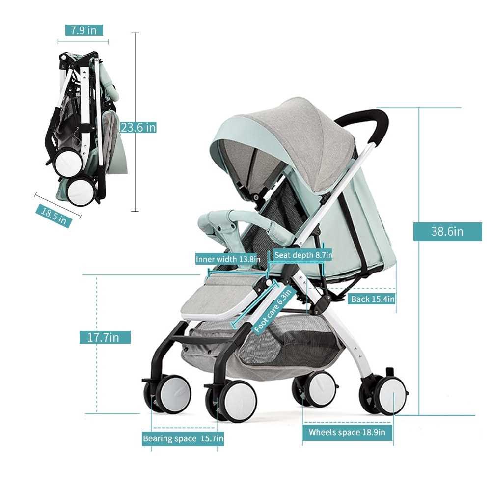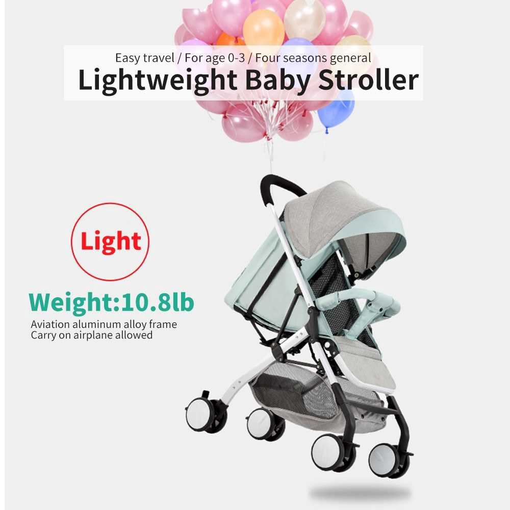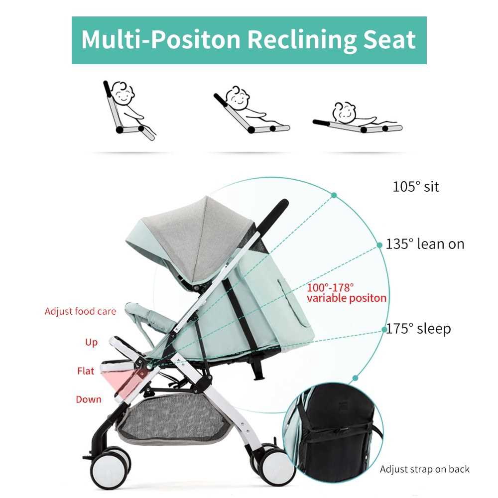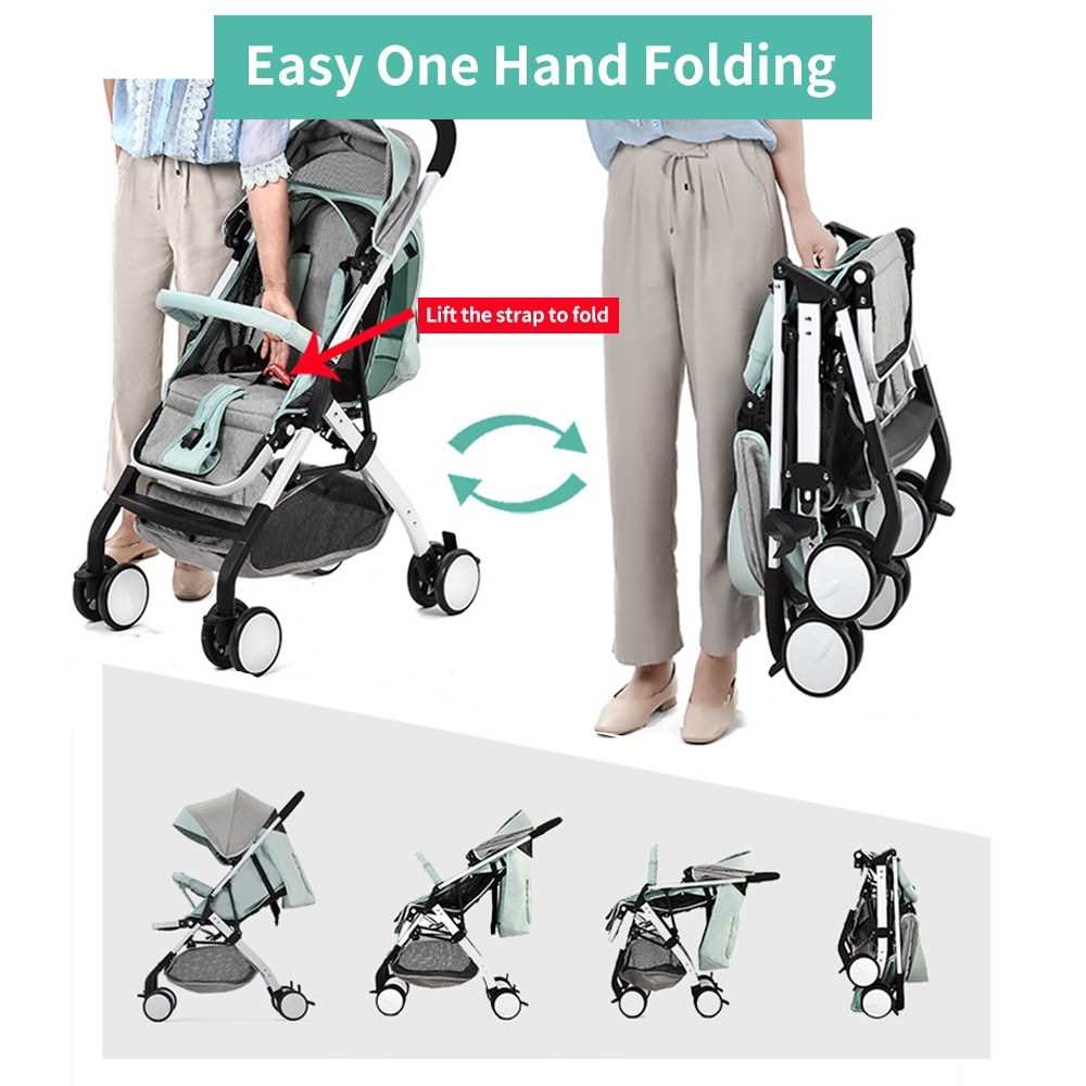 Airplane Baby Stroller One Step Fold Lightweight Convertible Baby Carriage with 5-Point Safety Harness Multi-Positon Re