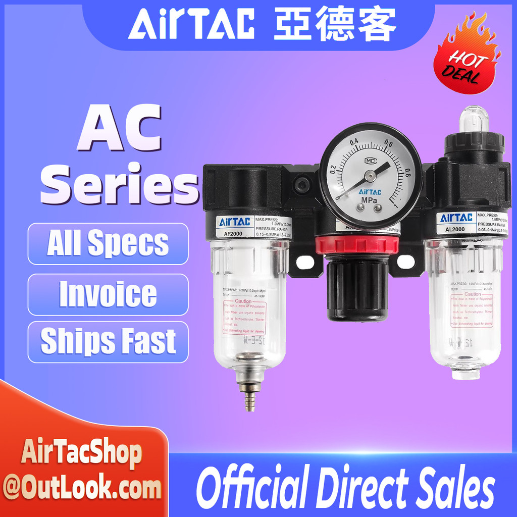 Airtac AC1500 AC2000 AC20001W FRL Unit 1/4" Pneumatic Filter Regulator Lubricator Air Preparation System